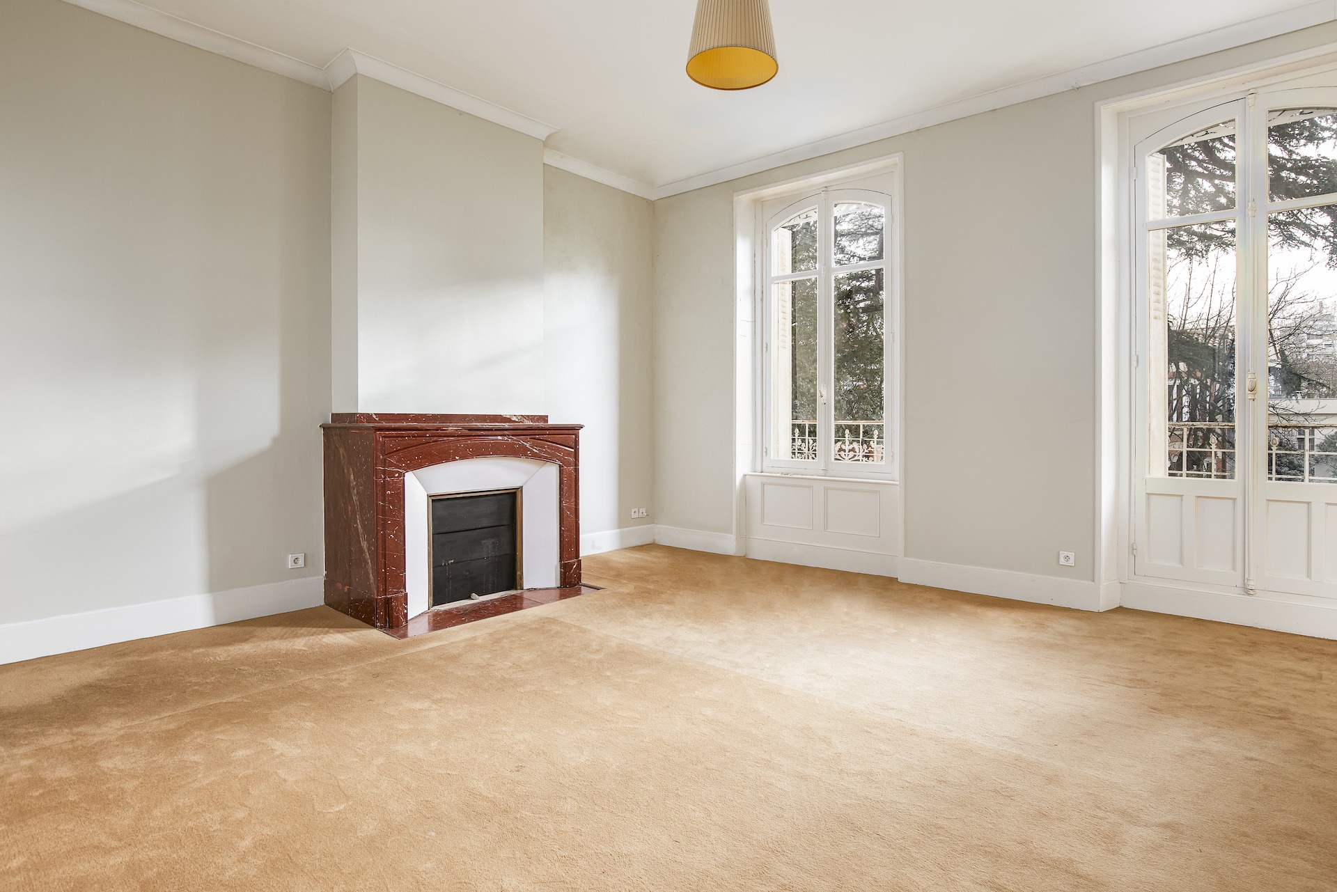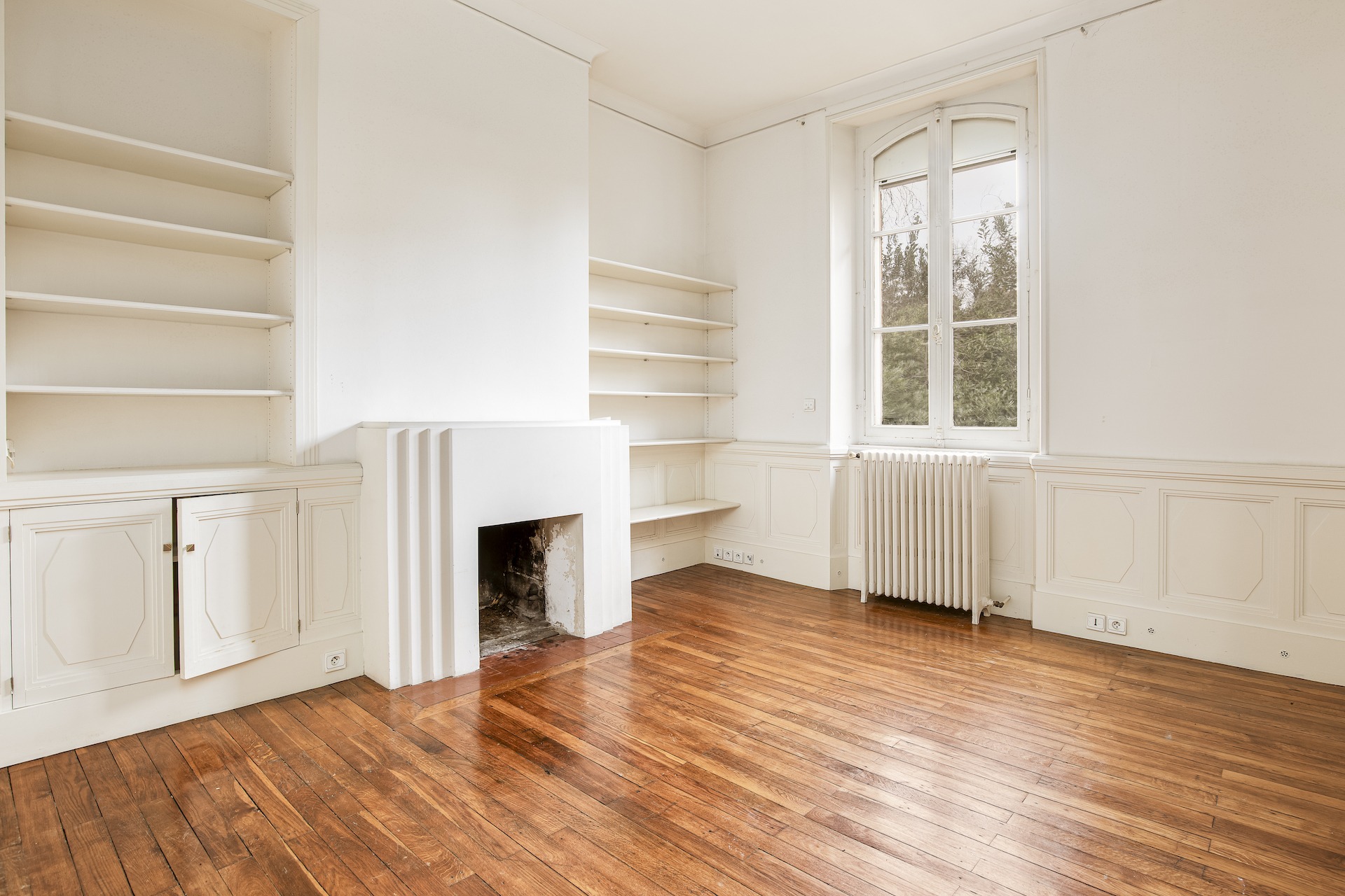 À l’intérieur, l’ambiance est élégante avec les classiques cheminées en marbre, les moulures de plâtres au niveau des soubassements et des portes, les parquets massifs qui habillent les espaces…