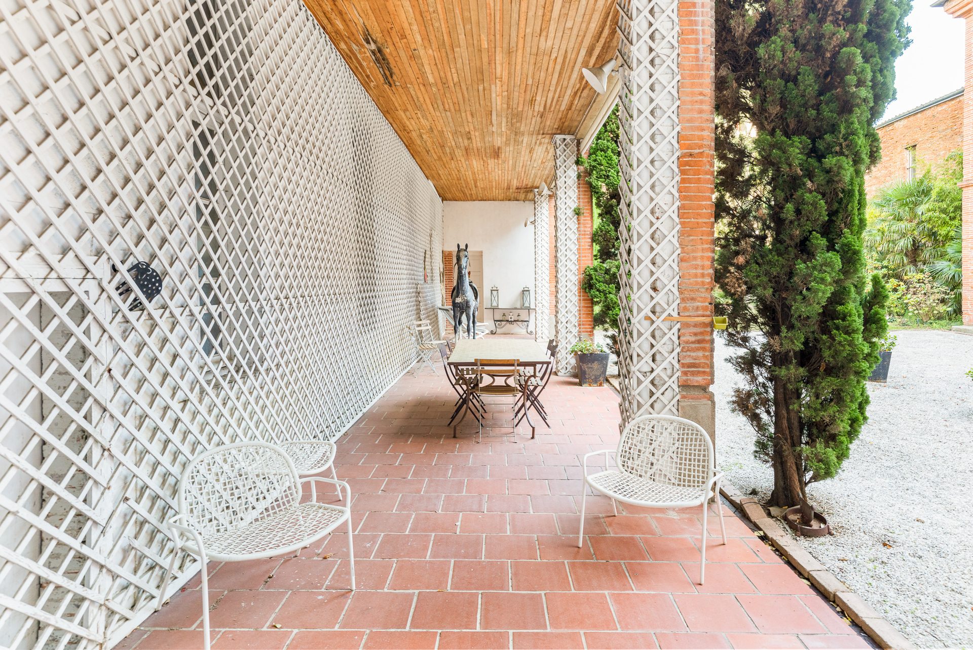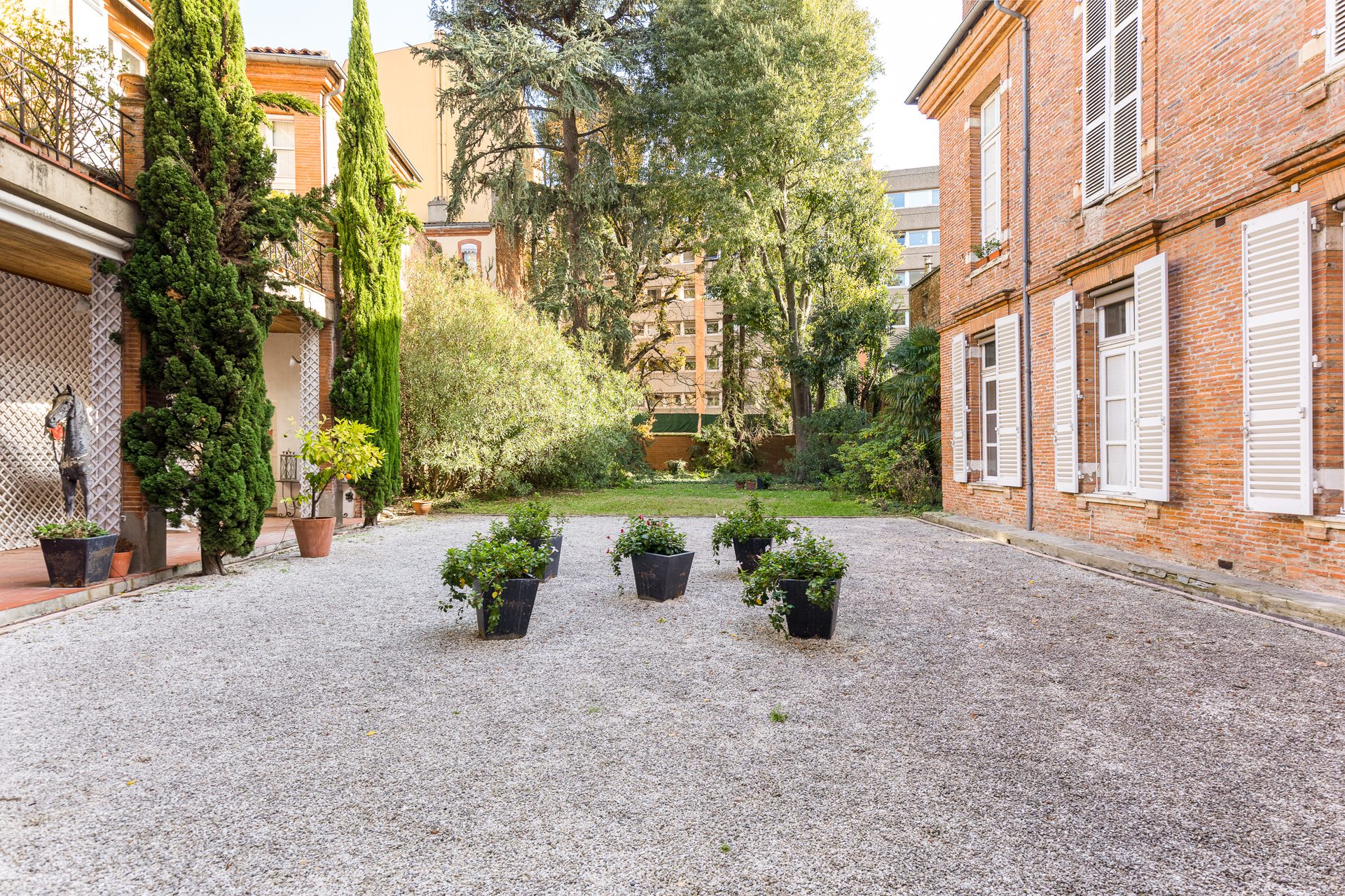 À l’extérieur, une élégante terrasse couverte prolonge les volumes intérieurs avec une belle continuité, ouvrant sur un jardin de plus de 600 m². Ce vaste espace, paisible et soigneusement préservé, confère à l’appartement une singularité rare au cœur de Toulouse, où ce type d’environnement reste peu commun.