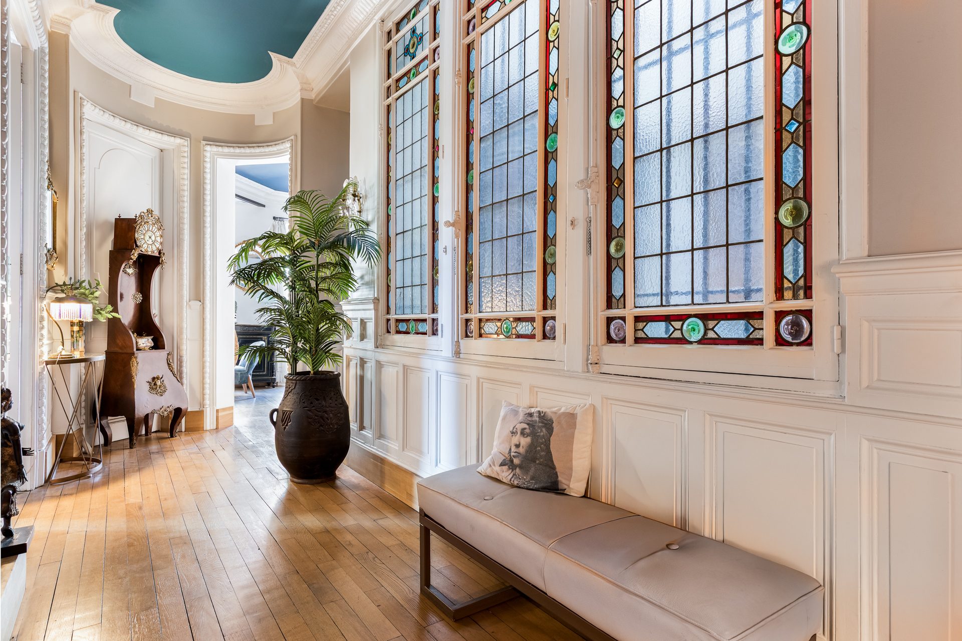 Dès l’entrée, le charme opère : volumes généreux, lumière omniprésente, matériaux nobles et détails architecturaux sublimes.