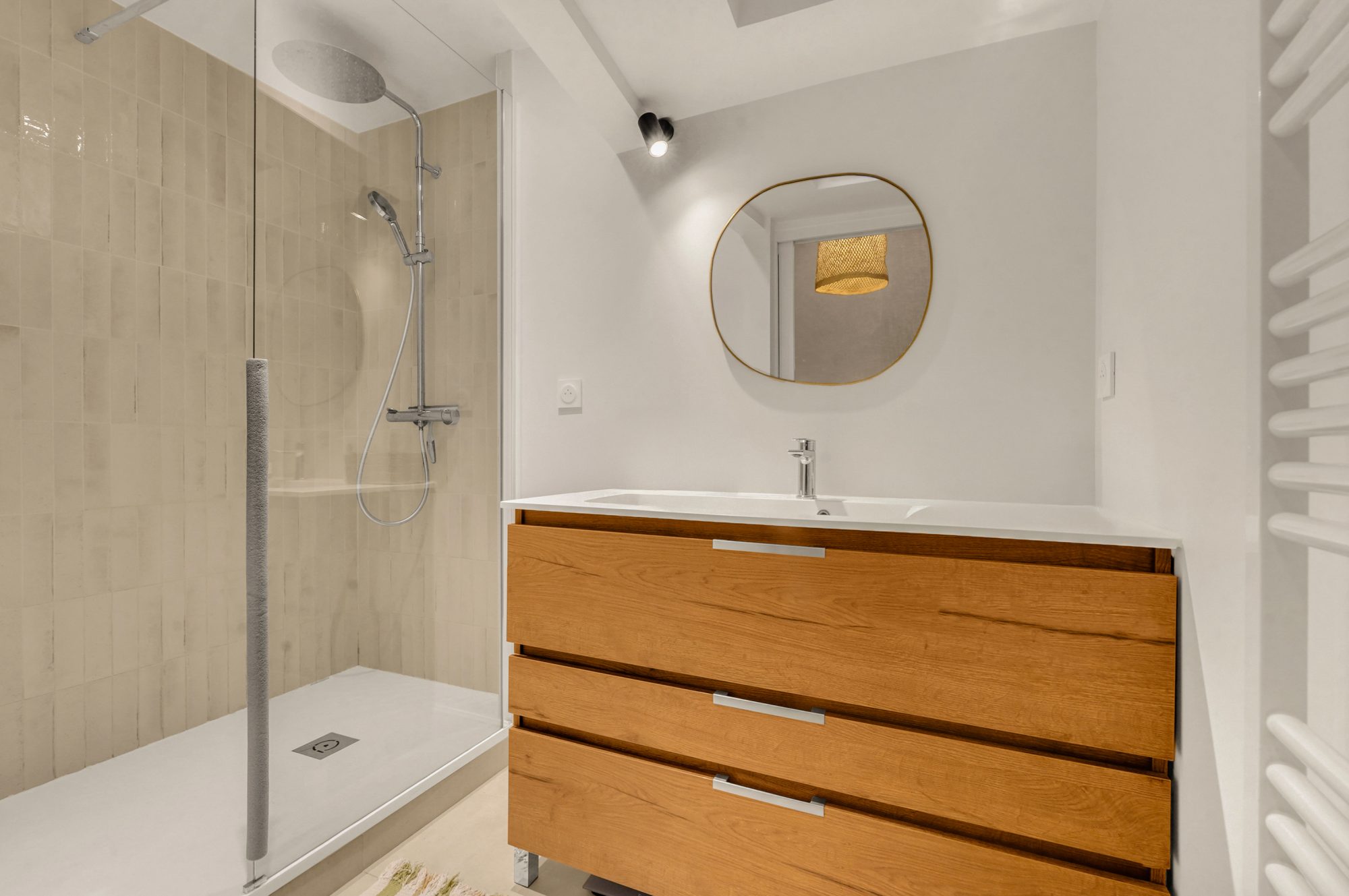 Le choix des matériaux, mêlant charme de l’ancien et touches contemporaines, confère à ce bien un équilibre parfait.