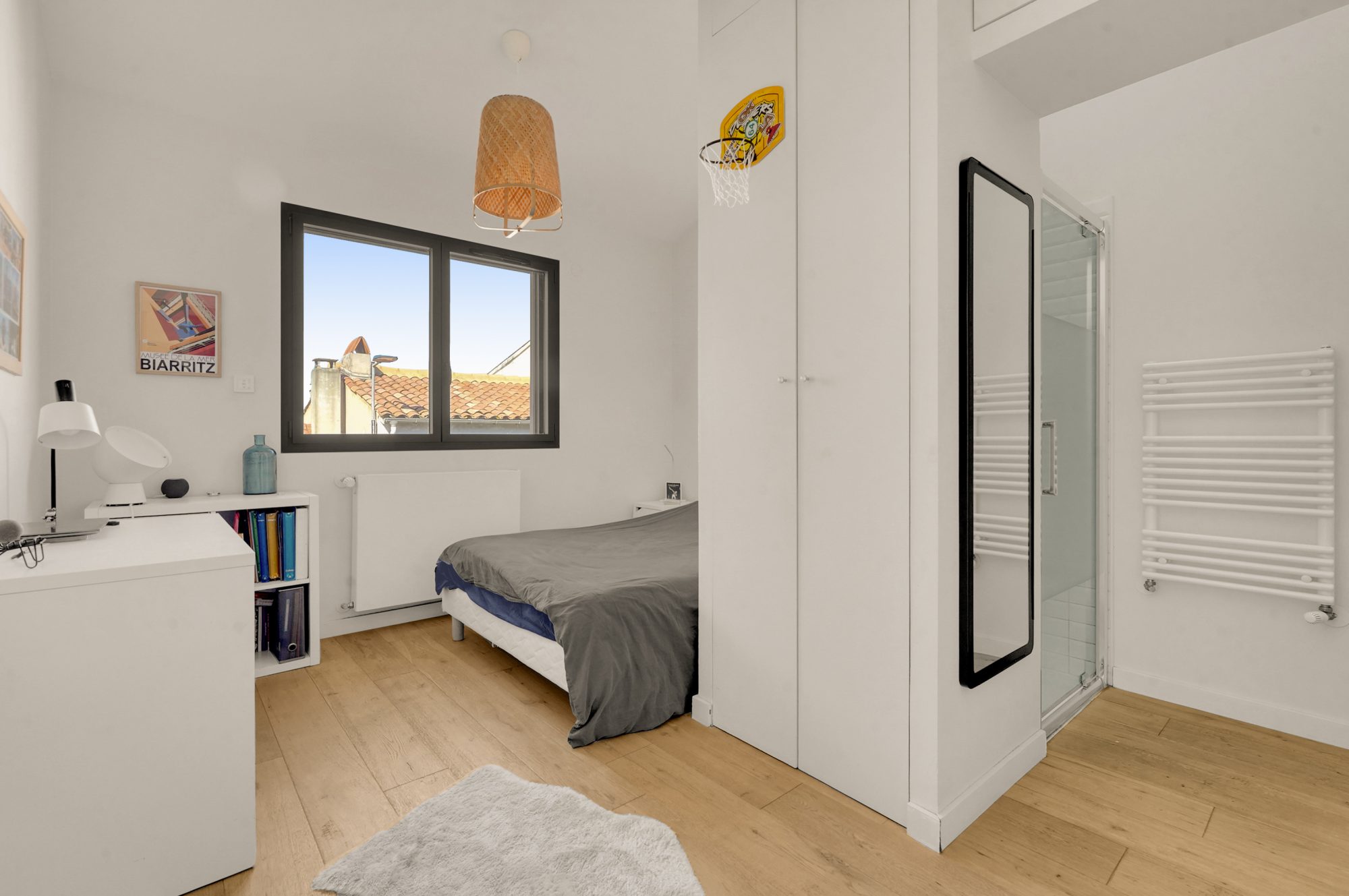 Un escalier élégant et lumineux mène à l’étage, qui accueille quatre chambres, dont une suite parentale avec dressing et salle de bains . Chaque chambre dispose de rangements intégrés. Deux salles d’eau supplémentaires complètent ce niveau.