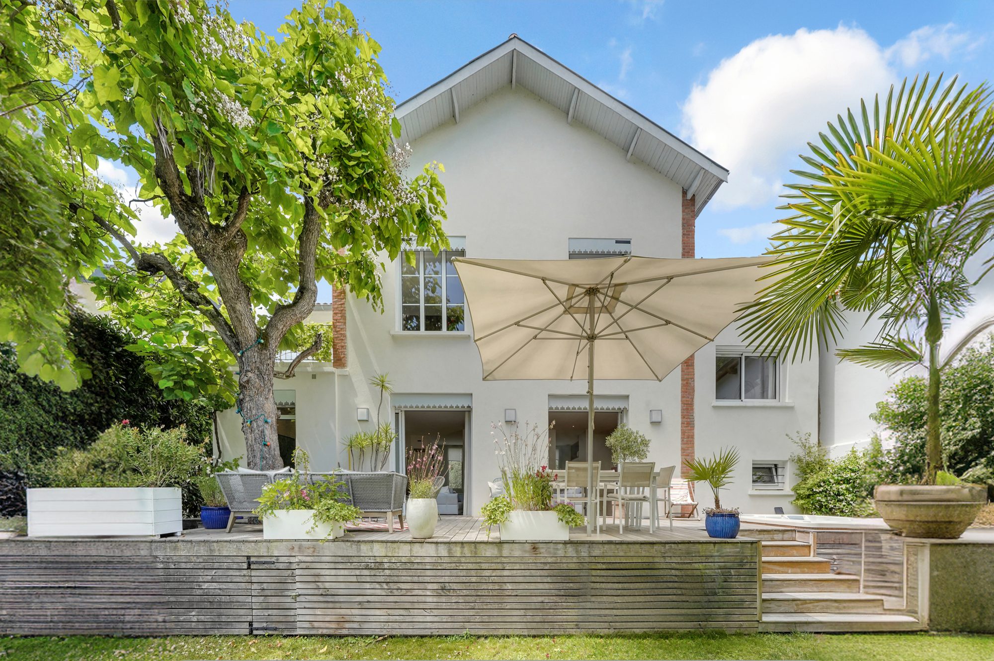 Cœur Côte Pavée, belle maison de 1936 entièrement rénovée en 2017 développant une surface de 237m² avec une surface au sol de plus de 340 m² .La rénovation menée par les propriétaires a permis la création de volumes contemporains ainsi que la préservation des éléments anciens et l’authenticité des lieux. La cuisine entièrement équipée, de belle facture, est prolongée par un coin lecture disposant d’une cheminée. Cet espace de convivialité très original apporte charme et confort. Le salon comme la salle à manger ouvrent via des baies à galandage sur une magnifique terrasse en bois. Agrémentée d’un spa, cette terrasse permet d’accéder au jardin paysager sans vis-à-vis et piscinable. La maison comprend par ailleurs 4 chambres , un bureau, un espace en combles utilisé en salle de sport et salon télévision.La partie parentale logée dans une extension récente reliée à la maison d’origine offre ainsi tranquillité et indépendance.Toutes les pièces sont dotées de larges ouvertures diffusant dans toute la maison une luminosité exceptionnelle.En rez de jardin, une cave couvre toute la surface de la maison. Garage pour un véhicule.Extrêmement fonctionnelle, cette belle maison familiale est idéalement placée car à proximité d’écoles privées de renoms et des commerces et à quelques pas de la future nouvelle ligne de métro.Honoraires à la charge du vendeur.