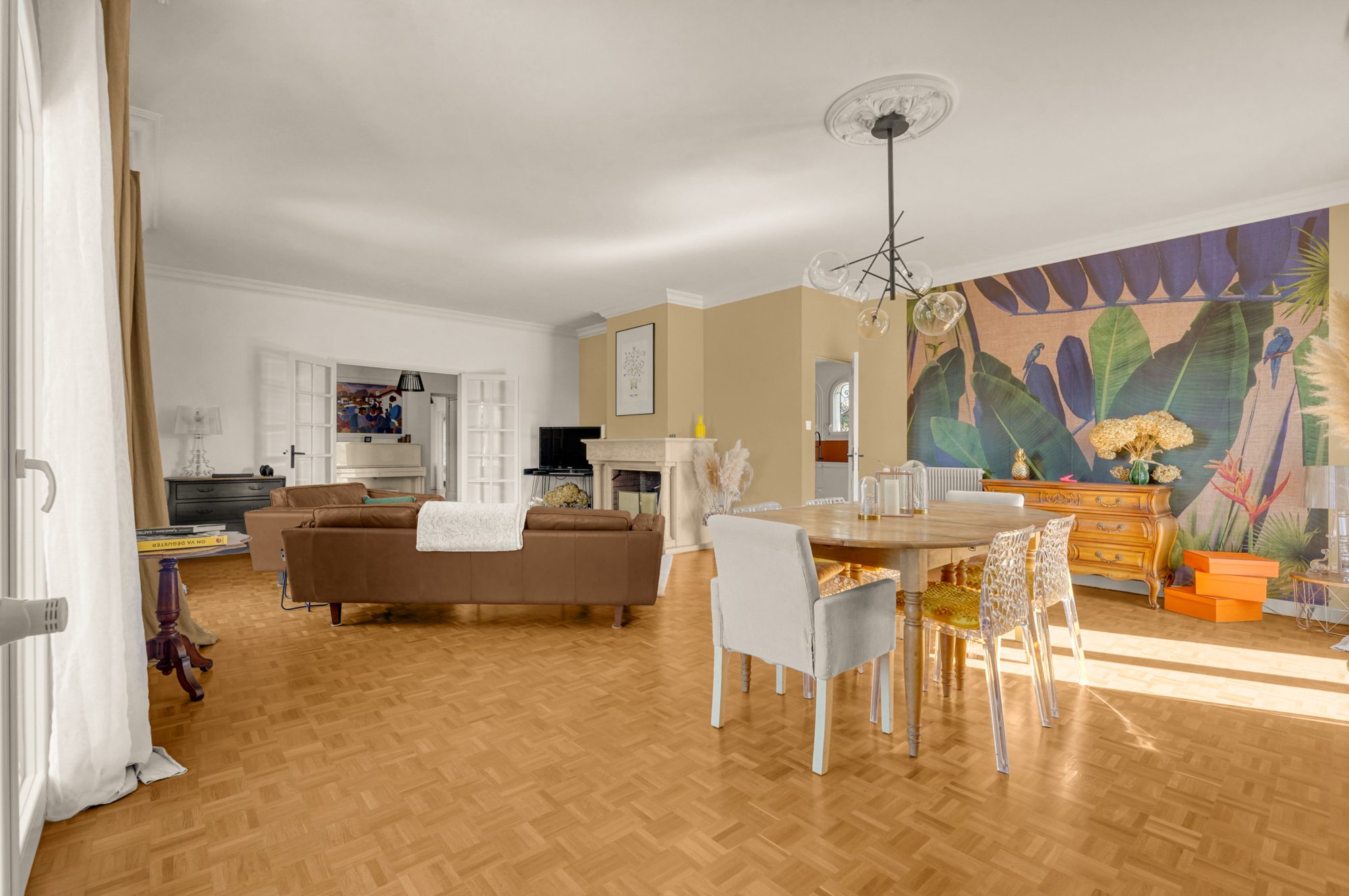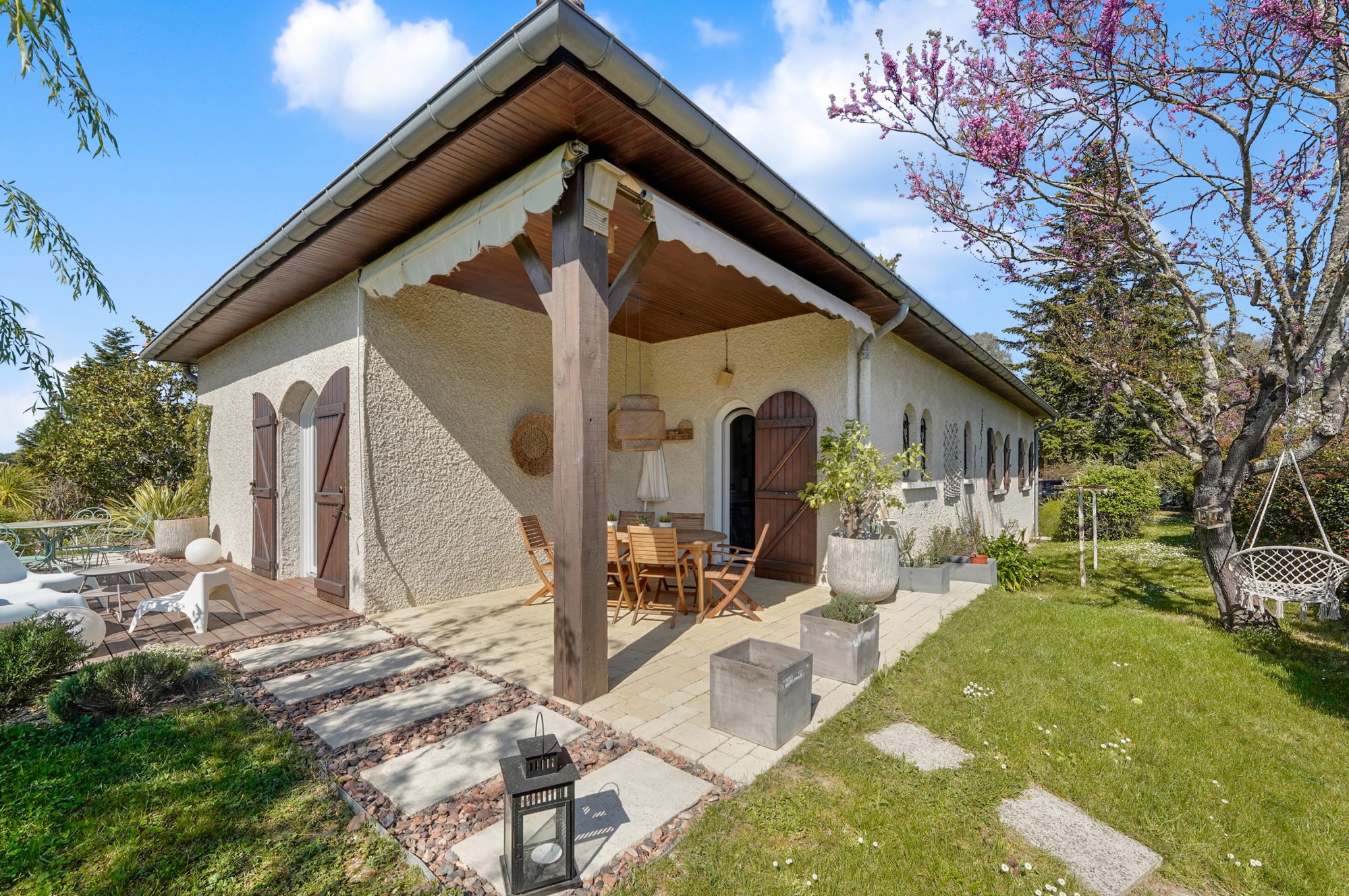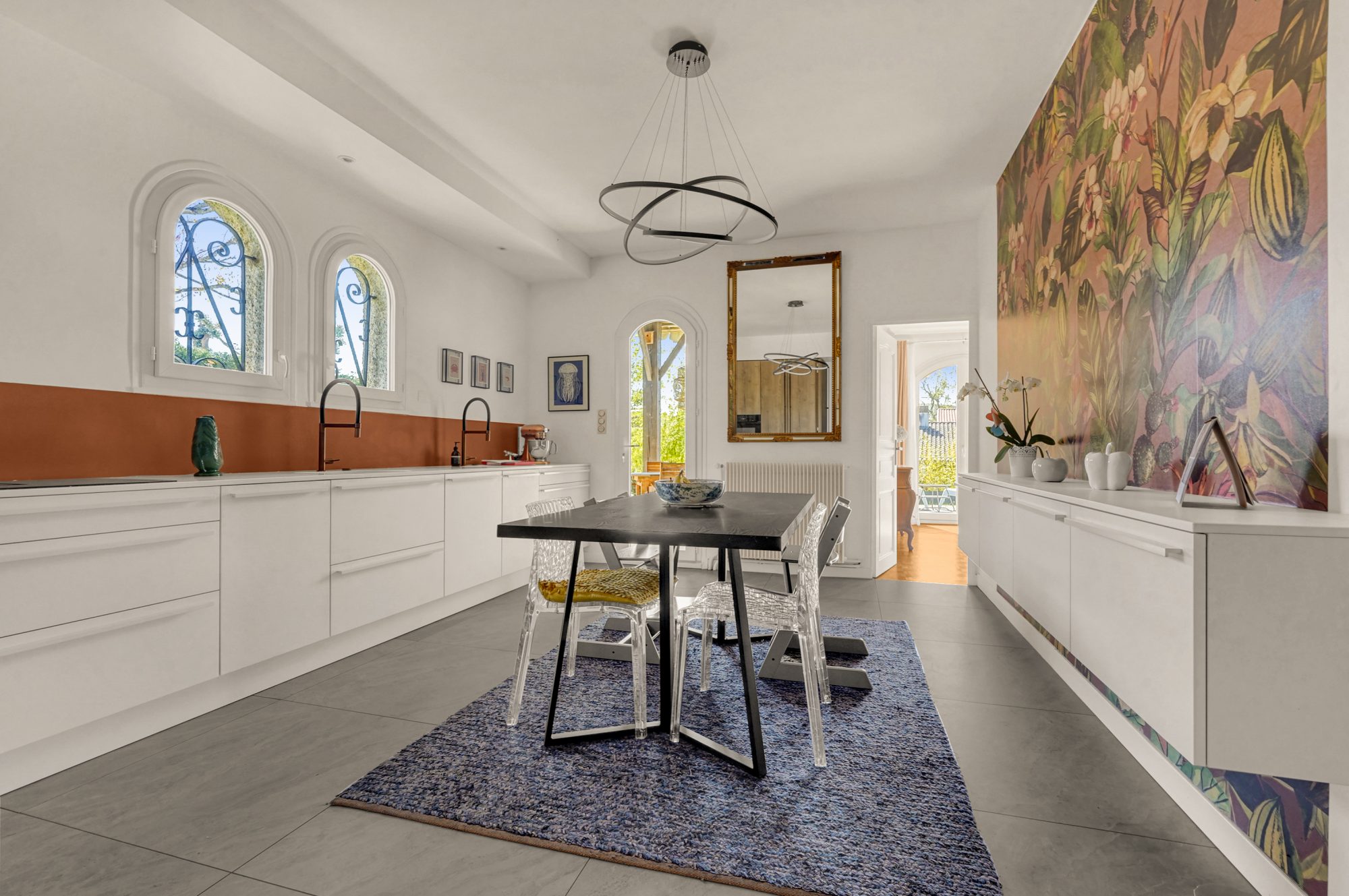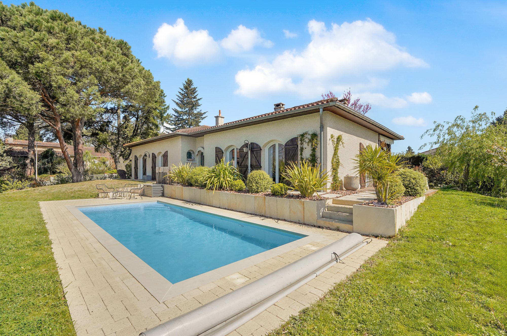 Balma centre, idéalement placée, dans un environnement résidentiel recherché, cette élégante maison de plain-pied d’environ 157.91m² a bénéficié d’une remise au goût du jour complète en 2020, alliant la fonctionnalité de l ‘architecture des années 1980 à une rénovation contemporaine de qualité. Implantée sur une belle parcelle arborée de plus de 1000m², la maison comprend 4 chambres et offre des volumes généreux, parfaitement équilibrés ainsi qu’ une distribution particulièrement fonctionnelle. Dès l ‘entrée , le ton est donné: un vaste hall sépare harmonieusement les espaces de vie de l ‘espace nuit, garantissant intimité et fluidité dans la circulation. Le séjour lumineux, tout comme la majorité des chambres, s’ouvre sur un jardin paysager soigneusement aménagé, agrémenté d’une piscine chauffée ; la cuisine Leicht, entièrement équipée, se prolonge par une agréable terrasse orientée Est . Un sous sol d’environ 80 m², comprend un double garage et de généreux espaces de stockage.