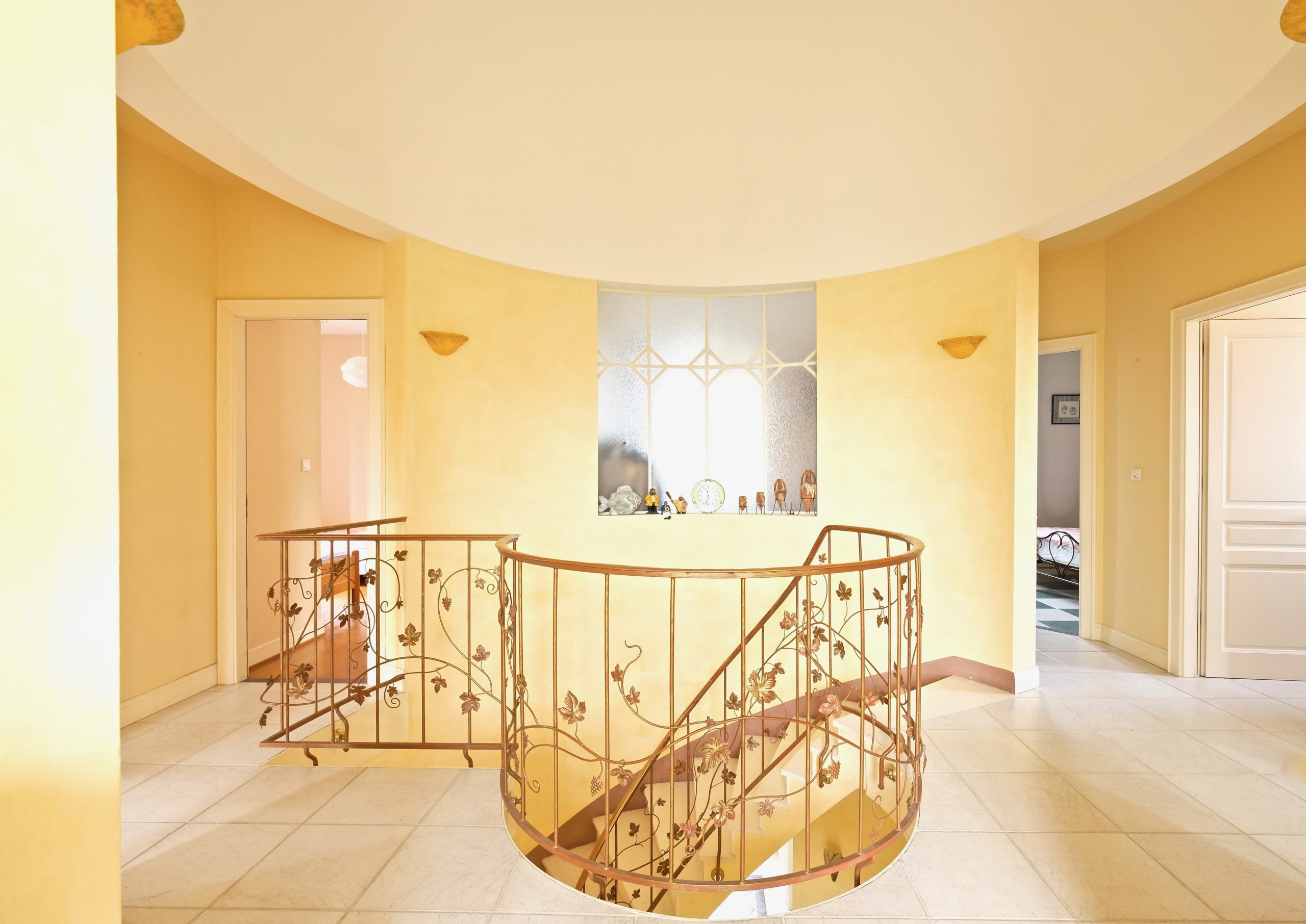 Un escalier original aux inspirations années folles dessert quatre belles chambres, une lingerie, une salle d'eau et une salle de bains.