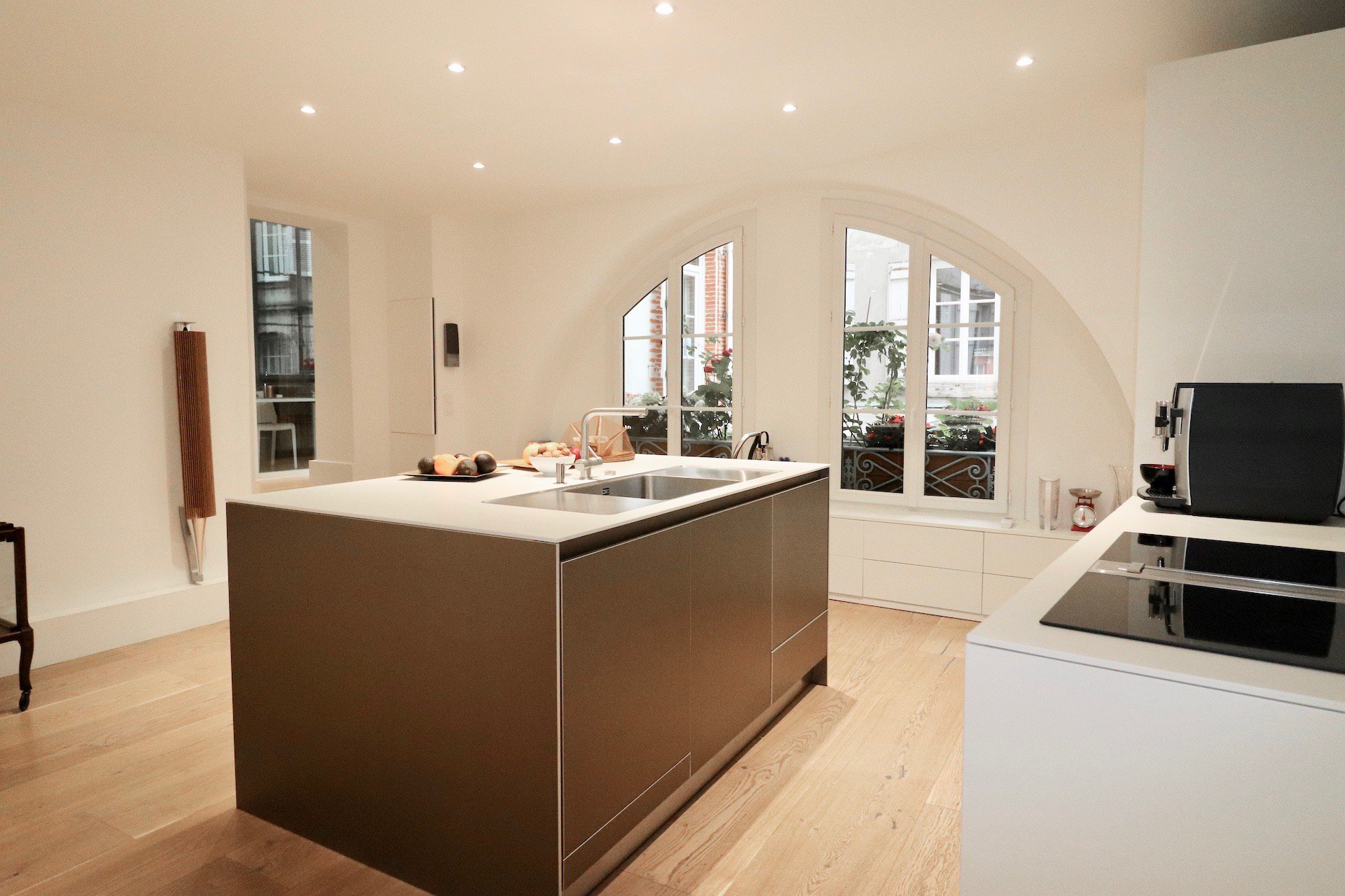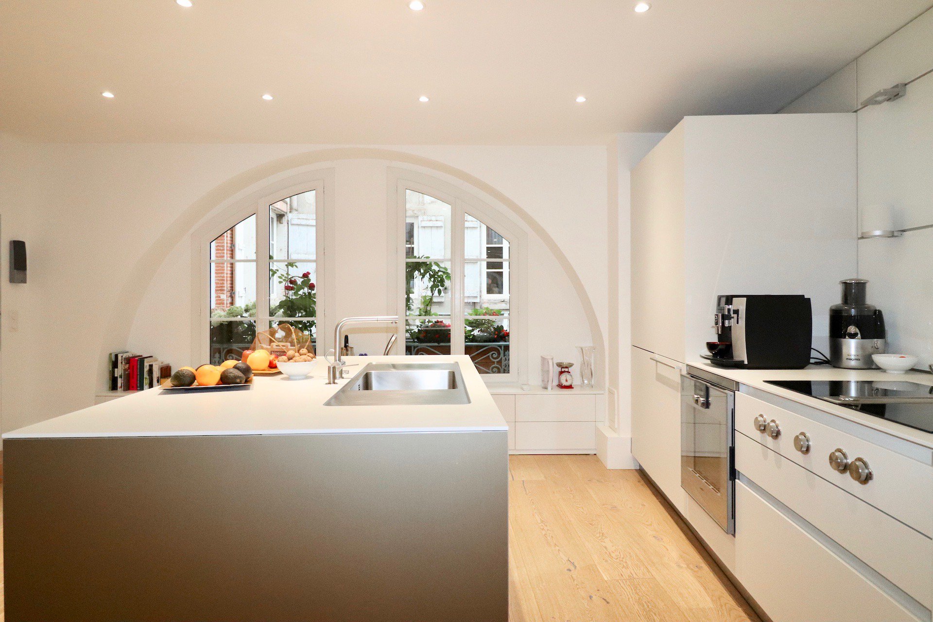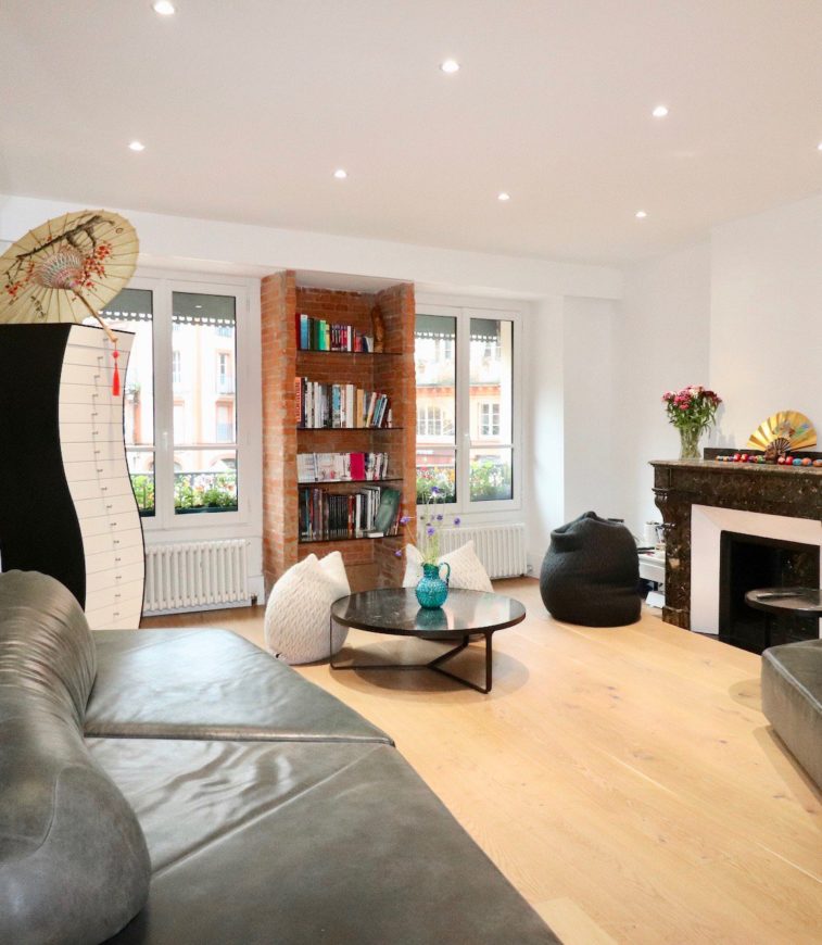 Une rénovation harmonieuse, jouant sur les effets de volumes et de perspective ponctuée par une vue panoramique sur la place de la Trinité.