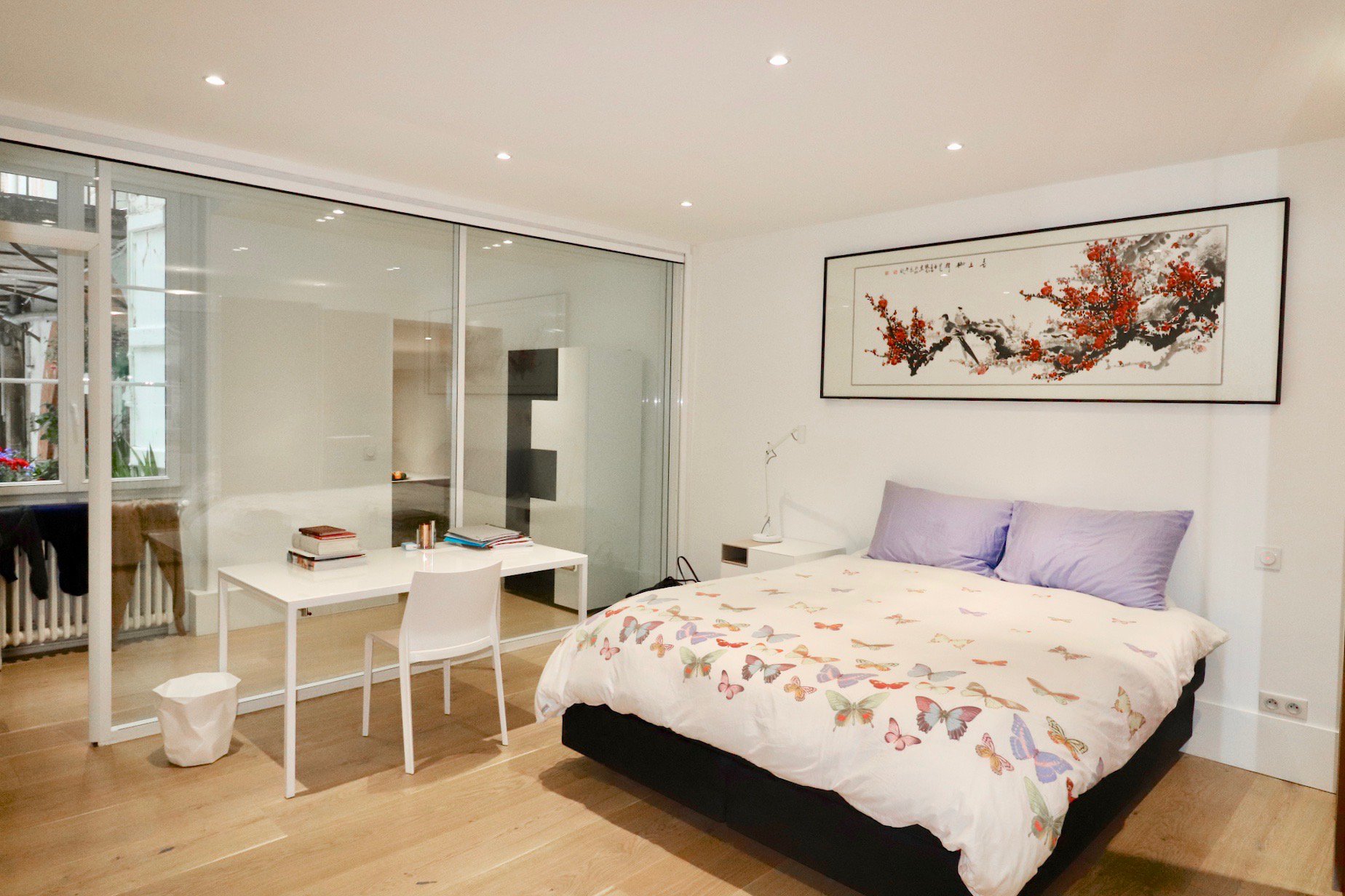 Somptueux appartement bourgeois de 137m² au 1er étage avec ascenseur aux prestations remarquables. Ensoleillé et sans vis à vis, il offre un vaste séjour exposé sud, une belle cuisine Bulthaup entièrement équipée avec des éléments Gaggenau et 3 suites avec chacune leur salle d'eau et WC privatifs. Un mélange de classicisme avec le plancher à large lame d'Italie et de modernisme avec le mobilier soigneusement choisi.