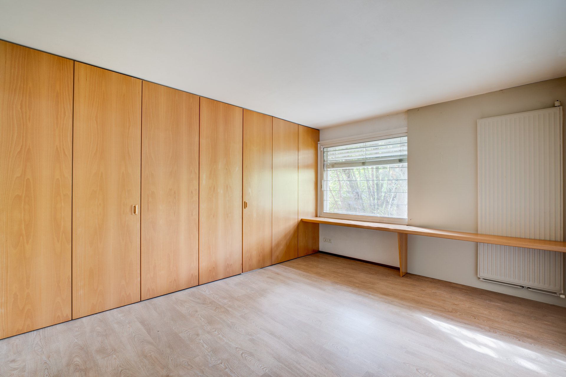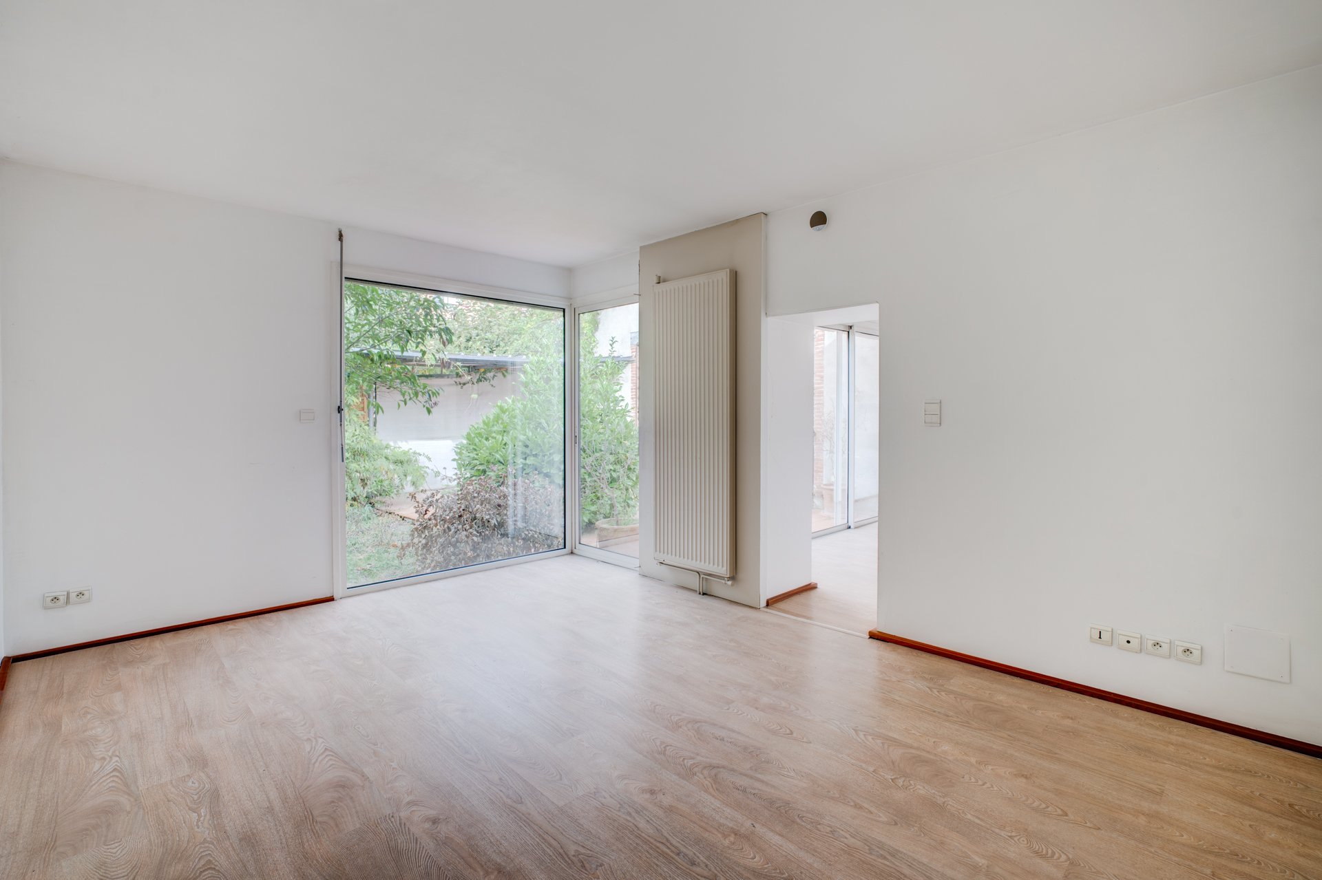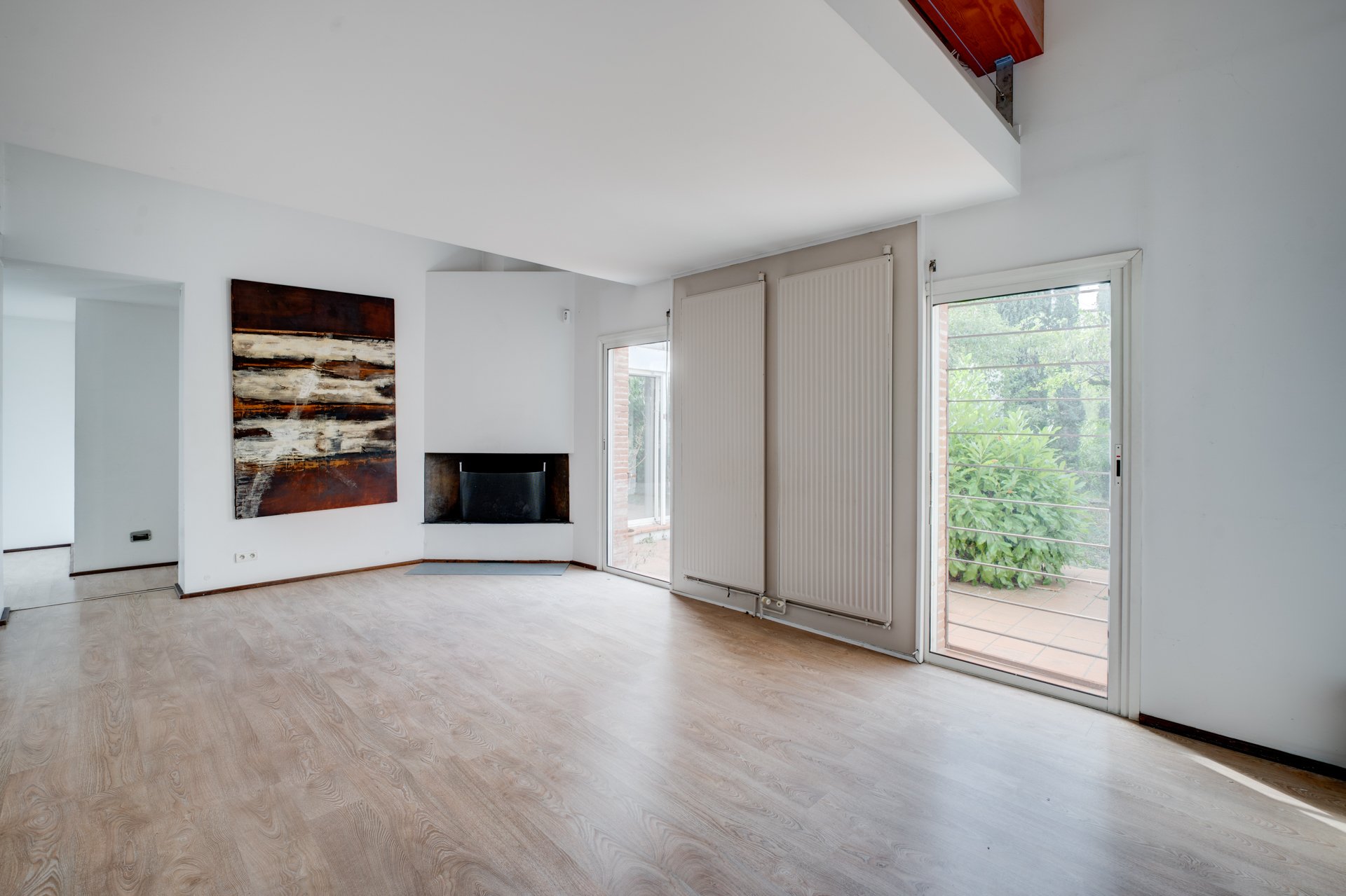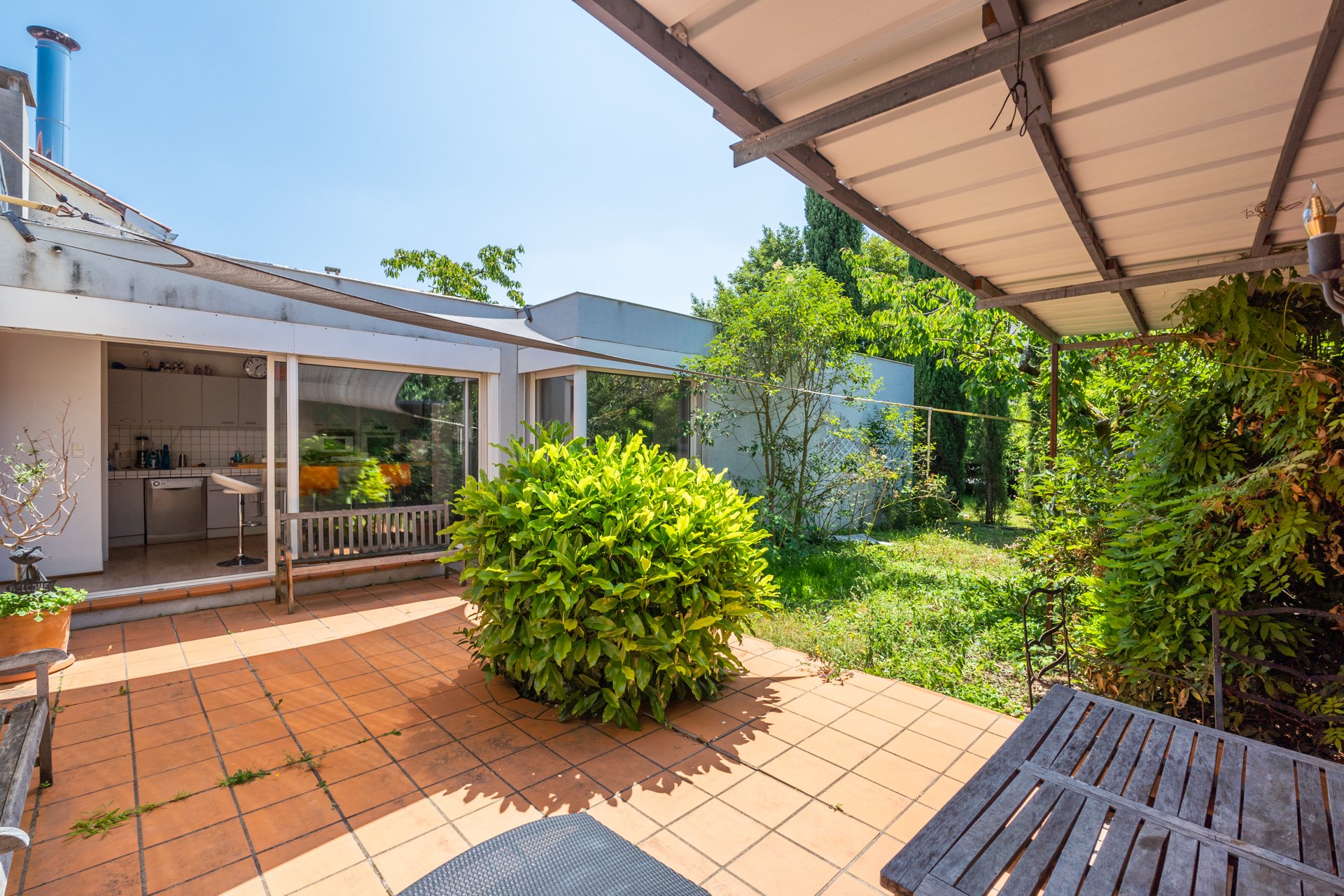 Conçue principalement de plain-pied, les pièces de vies bénéficient de larges ouvertures donnant sur un jardin verdoyant et intimiste.
