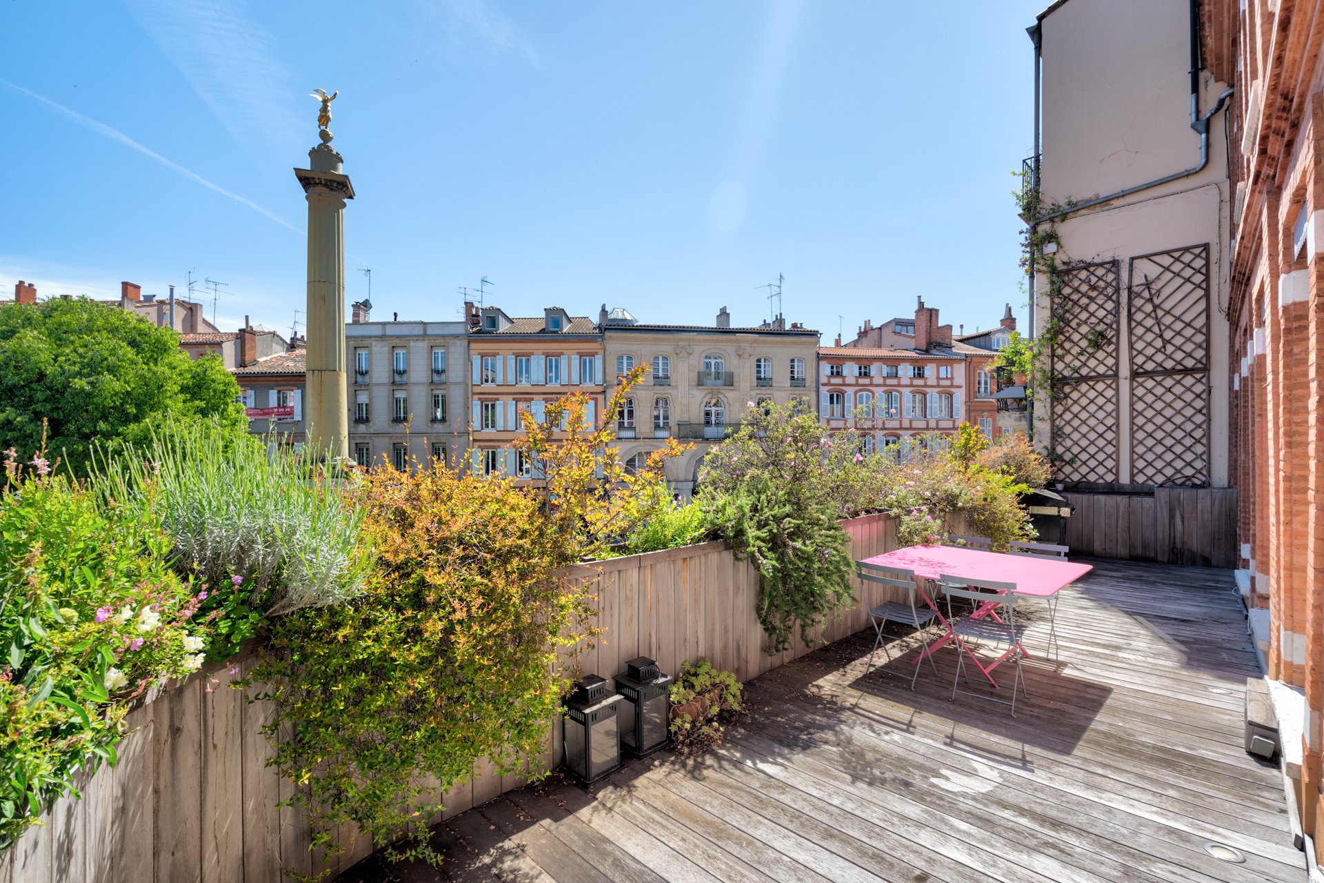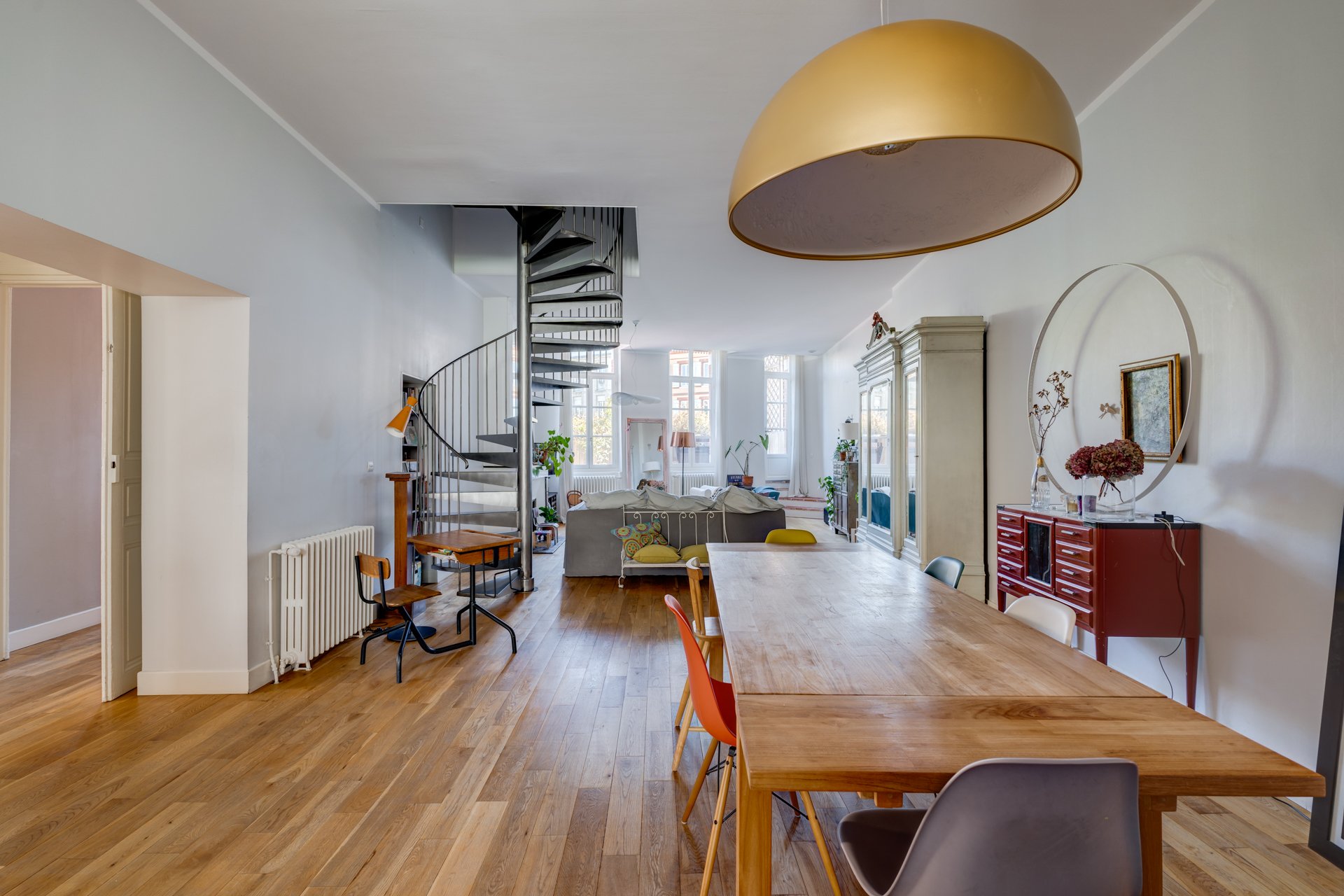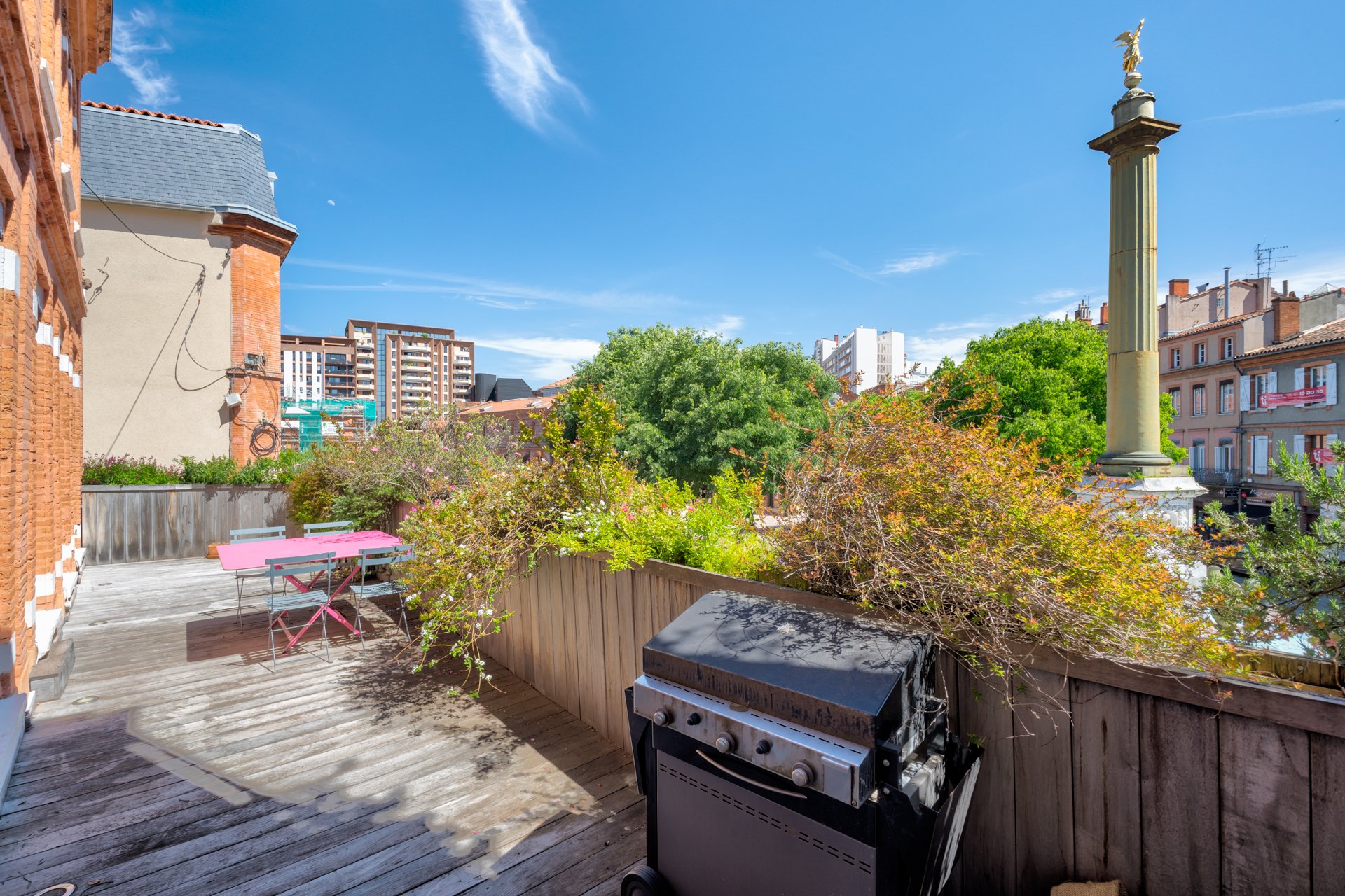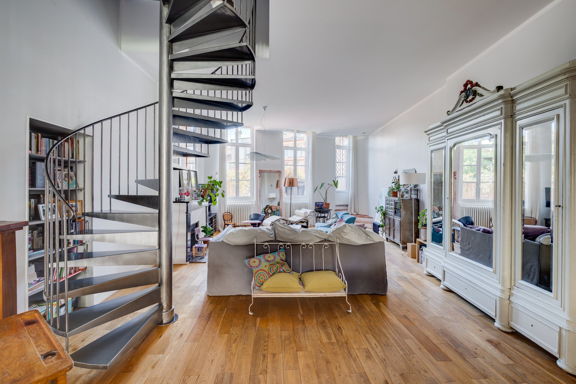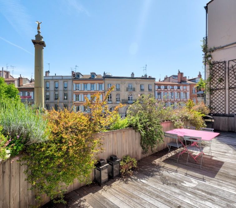 Exceptionnel. Magnifique appartement en duplex de 165 m² Loi Carrez, au premier et deuxième étage d'un très bel immeuble toulousain. Cet appartement traversant, repensé par un architecte, bénéficie d'une agréable terrasse de 25 m² plein ciel, unique dans le quartier. Ce superbe ensemble se compose au premier niveau, d'une entrée, d'un vaste salon-salle à manger avec cheminée, d'une cuisine ouverte entièrement équipée, d'une grande chambre avec salle d’eau attenante ainsi que d'un bureau. Le deuxième niveau, actuellement dédié aux enfants offre 3 chambres et une salle de bain. Appartement en parfait état, lumineux, au calme avec des vues splendides. 2 parkings en location. Possibilité de diviser l’appartement en deux.