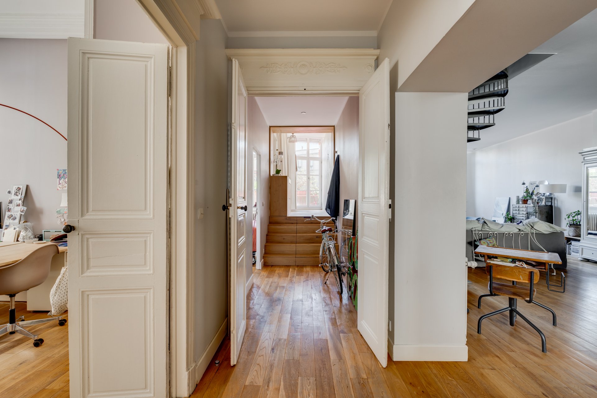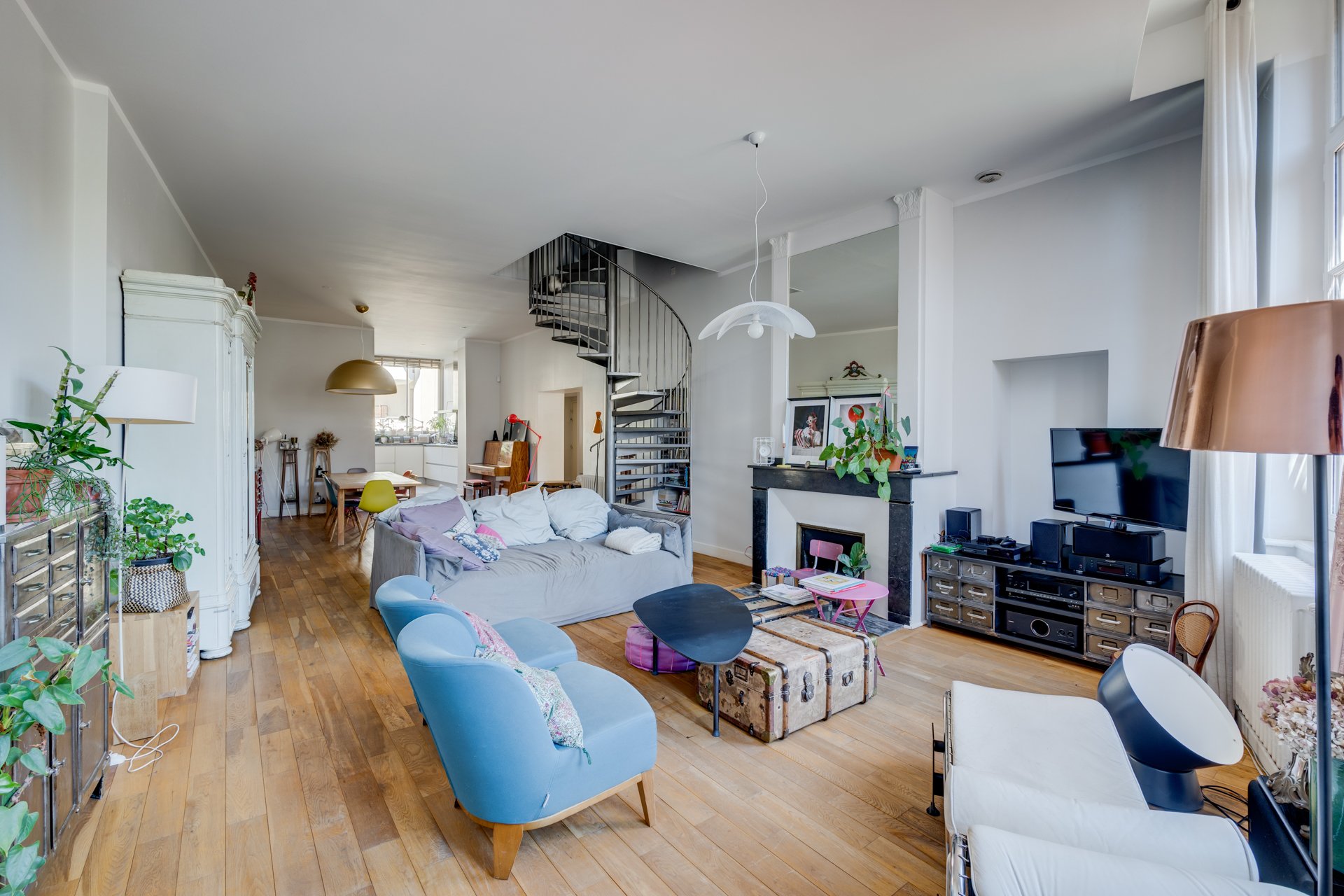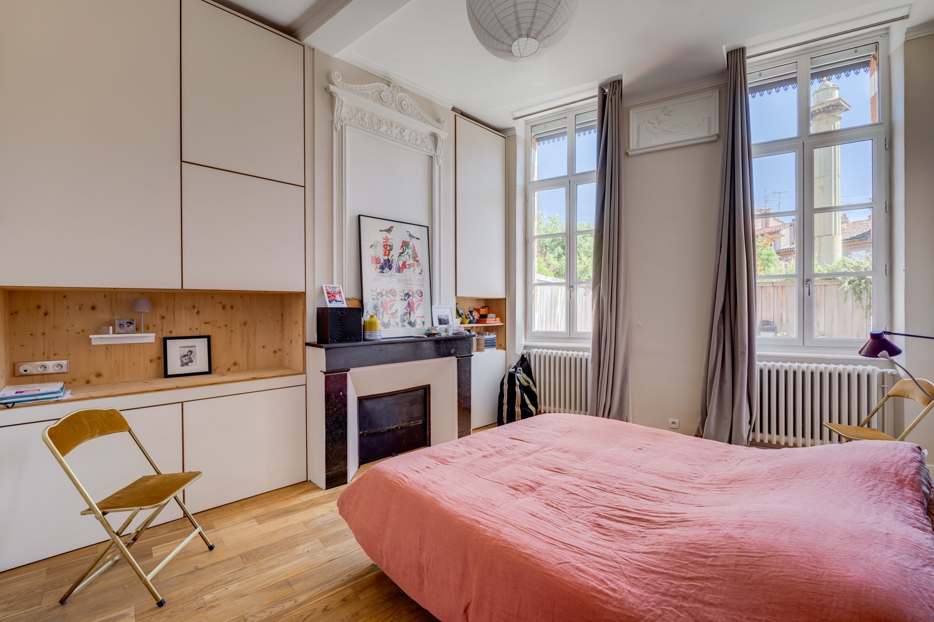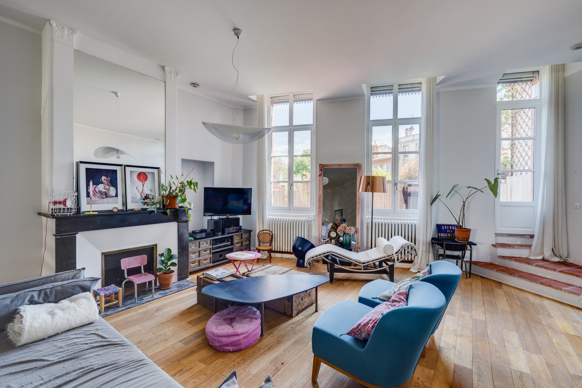 Exceptionnel. Magnifique appartement en duplex de 165 m² Loi Carrez, au premier et deuxième étage d'un très bel immeuble toulousain. Cet appartement traversant, repensé par un architecte, bénéficie d'une agréable terrasse de 25 m² plein ciel, unique dans le quartier. Ce superbe ensemble se compose au premier niveau, d'une entrée, d'un vaste salon-salle à manger avec cheminée, d'une cuisine ouverte entièrement équipée, d'une grande chambre avec salle d’eau attenante ainsi que d'un bureau. Le deuxième niveau, actuellement dédié aux enfants offre 3 chambres et une salle de bain. Appartement en parfait état, lumineux, au calme avec des vues splendides. 2 parkings en location. Possibilité de diviser l’appartement en deux.